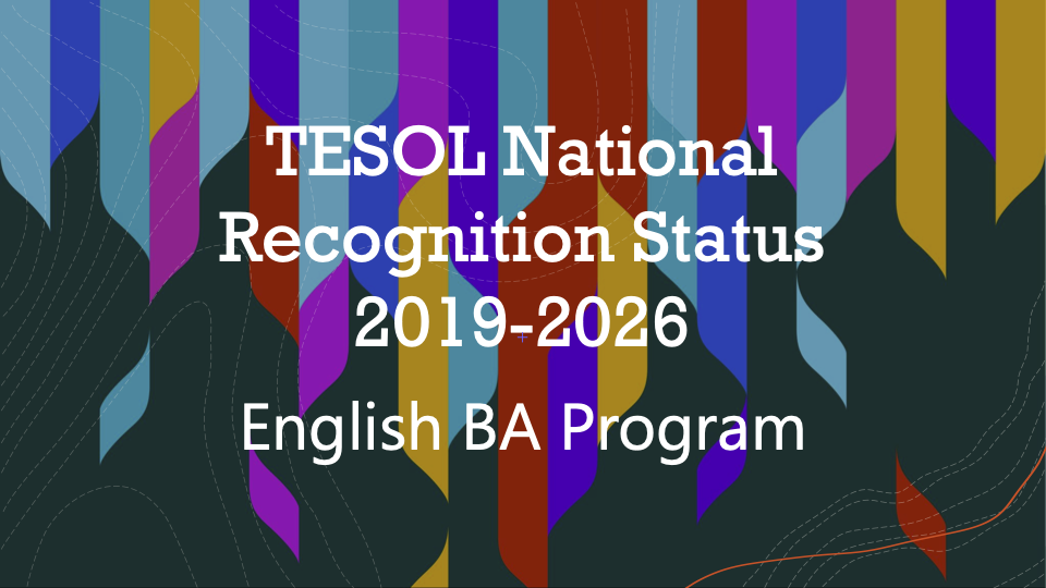 The B.A. English program was accredited by the National Council for the Accreditation of Teacher Education (NCATE) in October 2011. The program is in the process of seeking accreditation from the Council for the Accreditation of Educator Preparation (CAEP). The program is nationally recognized by the specialized professional association, Teachers of English to Speakers of Other Languages (TESOL), through 2026.