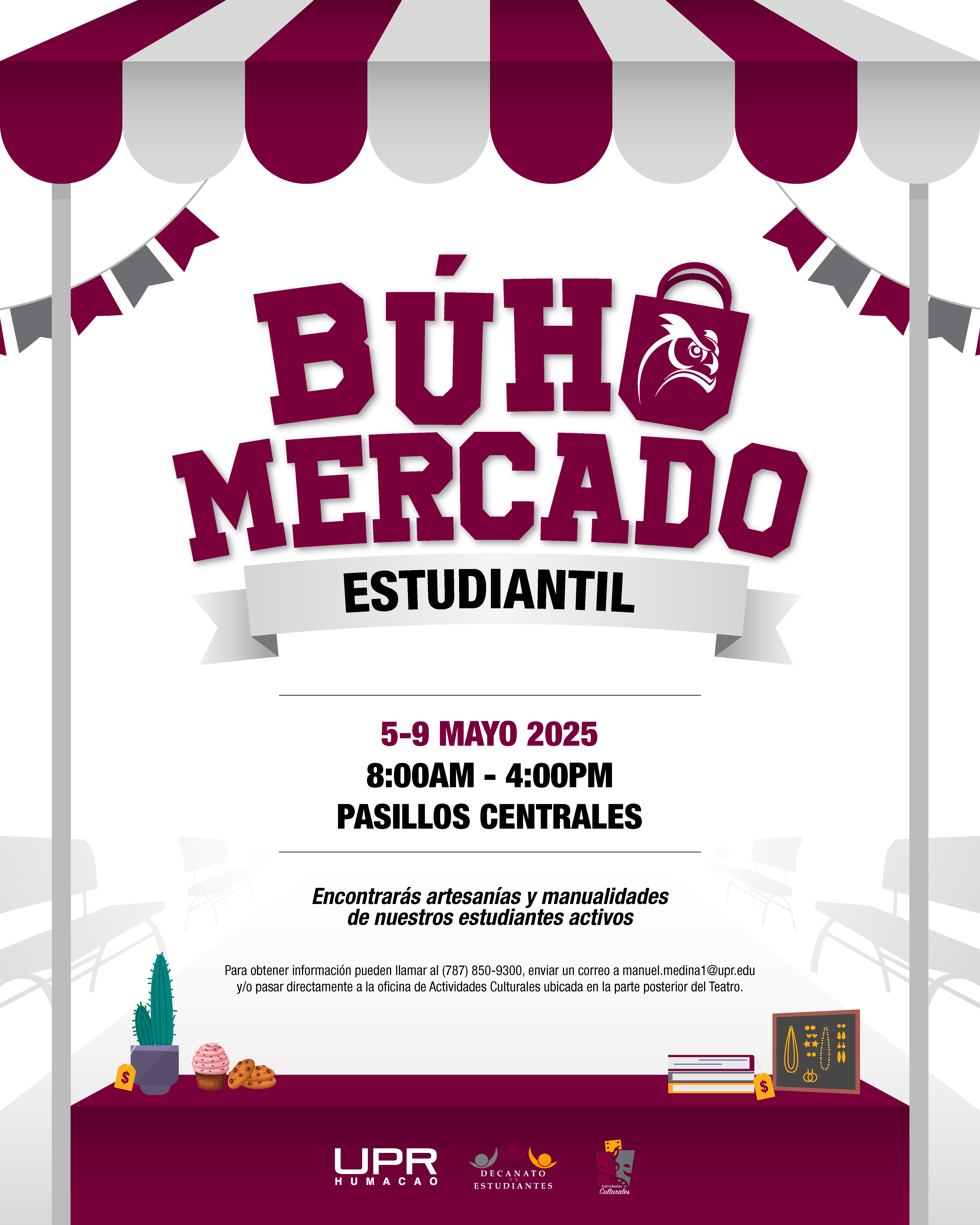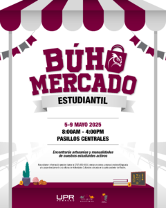 Búho Mercado Estudiantil 8:00 am – 4:00 pmmayo 6, 2025 Pasillos Centrales View Location iCal Google Calendar Ver calendario completo