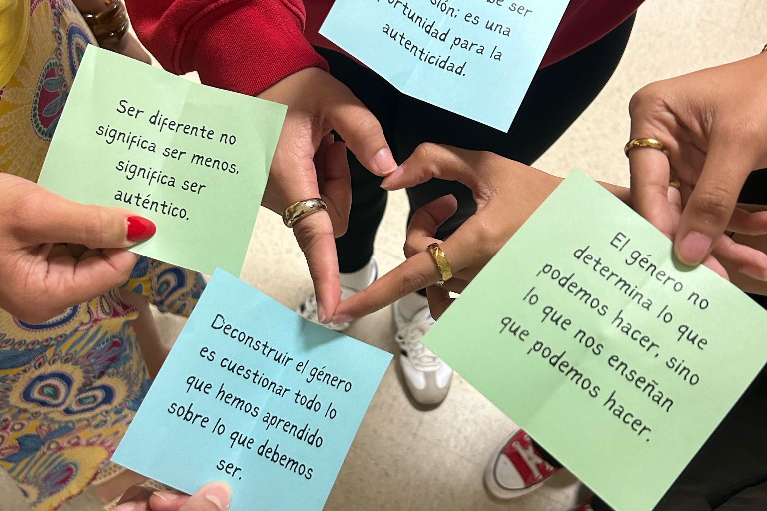 “Puedes sentirte segura, seguro y segure de acercarte a nosotres. Estamos aquí para escucharte, acompañarte y aprender juntes.”