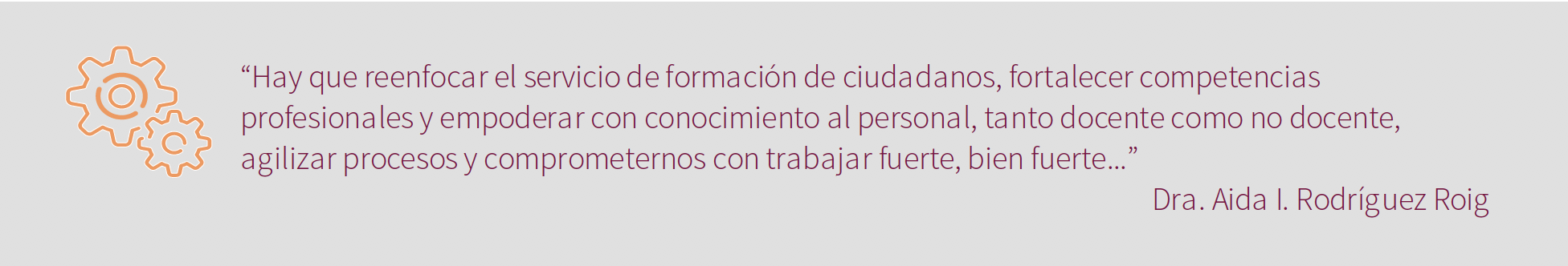 Todos sabemos que la demografía de la región oriental a la que servimos ha ido cambiando, demostrando un descenso en el número de personas de edad escolar y universitaria que nosotros servimos. Esto trae implicaciones directas a nuestra función esencial de educar y formar ciudadanos útiles que garanticen esa calidad de vida a la que aspiramos. Este descenso implica menor necesidad de instituciones de servicios. Comenzamos a ver cierres en centros de salud y de escuelas, y mayores escollos para trabajar con la población más necesitada del servicio de bienestar social. Si a este dato real le añadimos la devastación de los huracanes del 2017, temblores del 2019-2020 y la pandemia que comenzó en enero de 2020, lo que debemos mirar no es necesariamente el daño material, pues este ha sido y está siendo compensado poco a poco hacia su restauración, sino la pérdida de personas, el cambio demográfico adicional que estos eventos podrían haber producido en nuestra región de servicio.